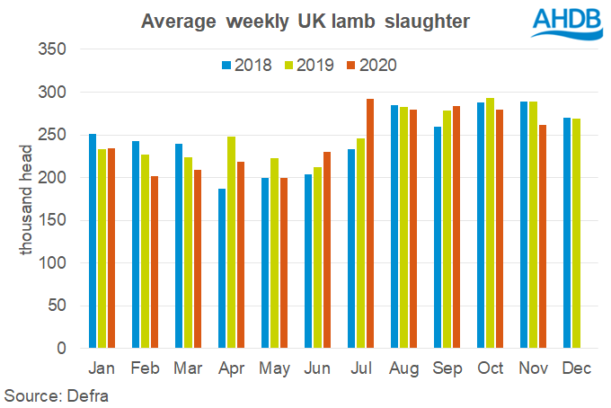 In addition, as has been the case for most of this year, adult sheep slaughter was well behind 2019 levels. At 109,400 head, throughput was 20% lower than last November. The decline in adult sheep slaughter has been somewhat larger than anticipated this year. This may boost the carry-over of lambs for slaughter in the New Year, if fewer ewe replacements have been needed. Alternatively, the flock might not have contracted quite as much as we forecast. We will look at this in more detail for our next outlook report in January.
